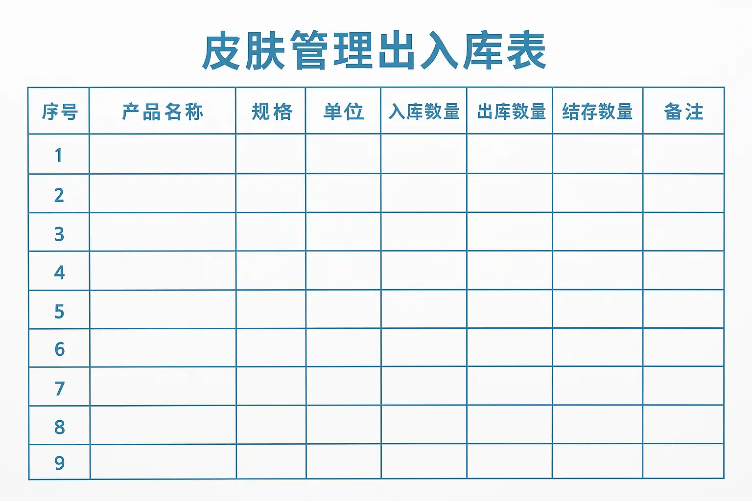皮肤管理出入库表格有哪些关键字段需要填写?