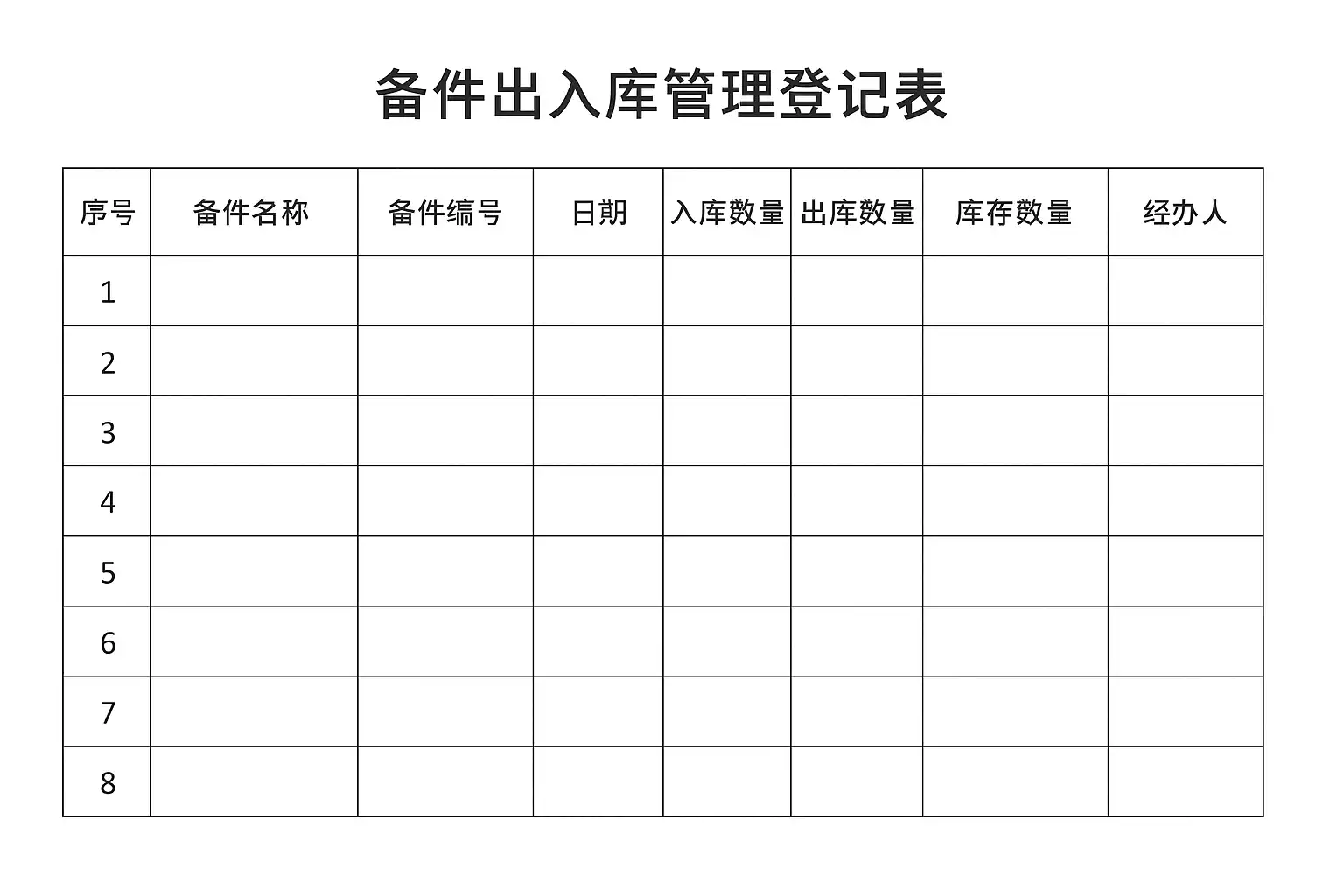 库存误差通常源于记录不及时、不完整或错误。利用规范完善的备件出入库管理登记表格并结合定期盘点,可大幅降低误差率。具体方法包括: