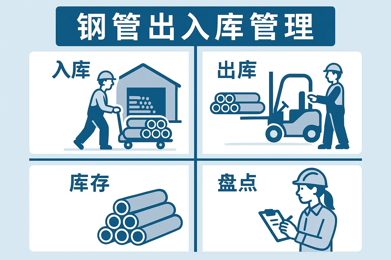 作为一名仓库管理员,我经常困惑钢管出入库管理的具体流程是什么?如何确保每一步都符合规范,避免出现库存差错?