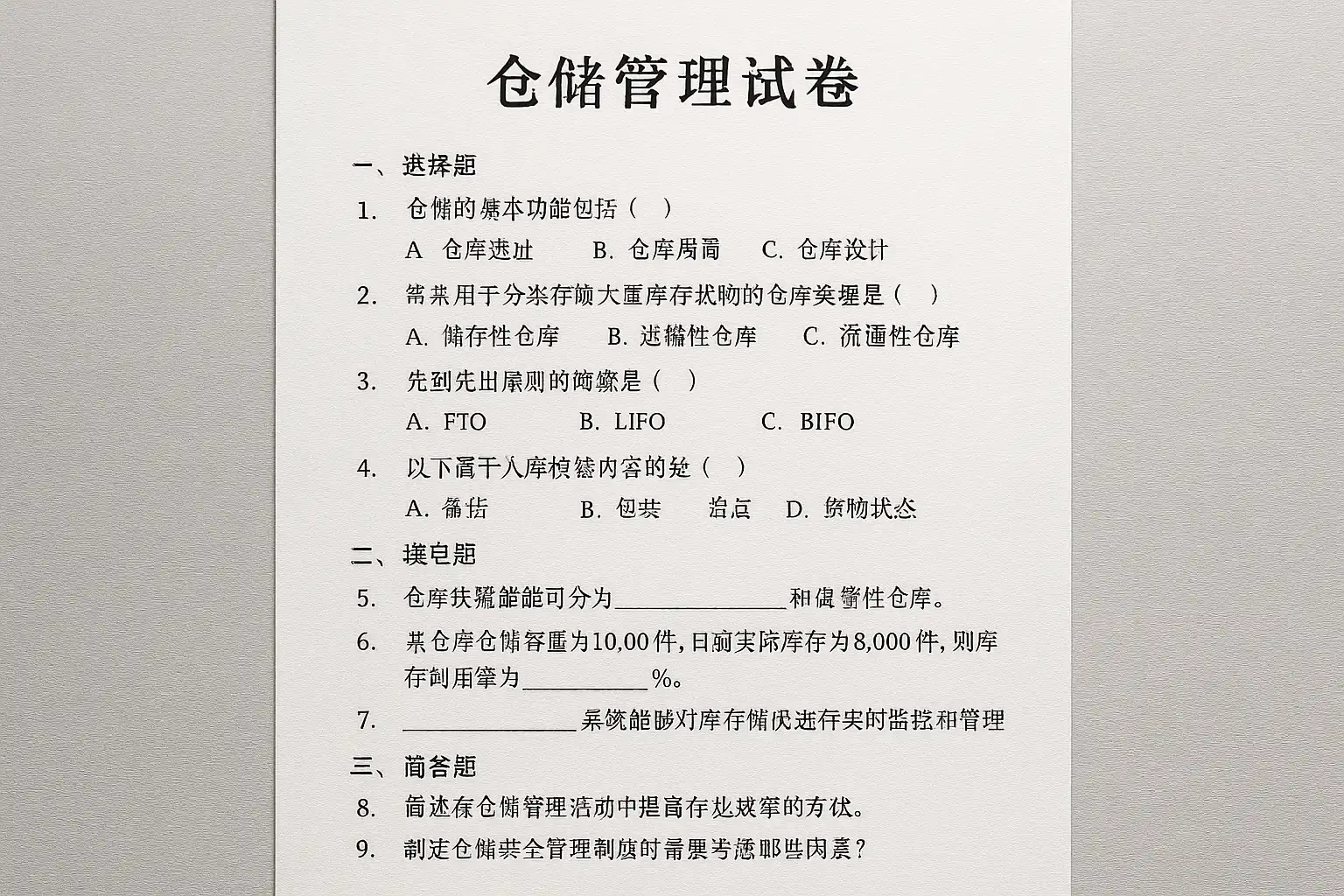 - 补充建议: 关注行业动态,如智能硬件(AGV机器人)、IoT传感器等在现代仓储中的集成,也是高阶试卷常见延伸考察方向。