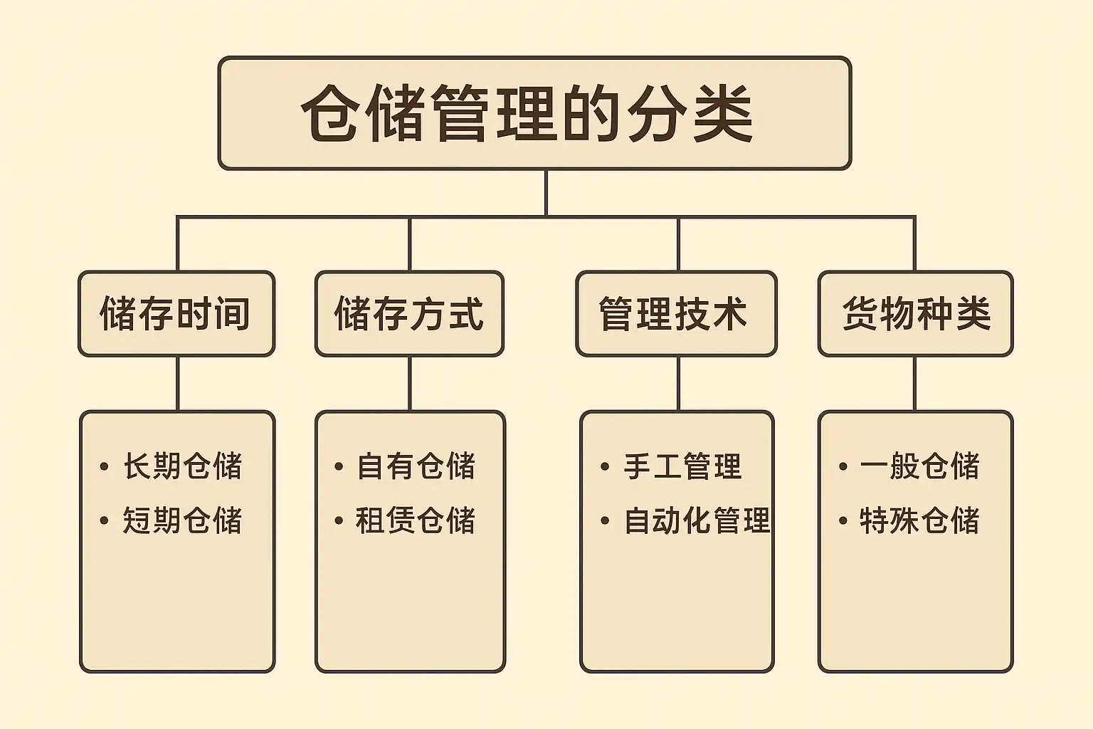我最近在学习仓储管理,发现它有很多不同的分类,但具体有哪些主要类型呢?我想了解这些分类分别适用于哪些场景,方便我更好地理解和应用。