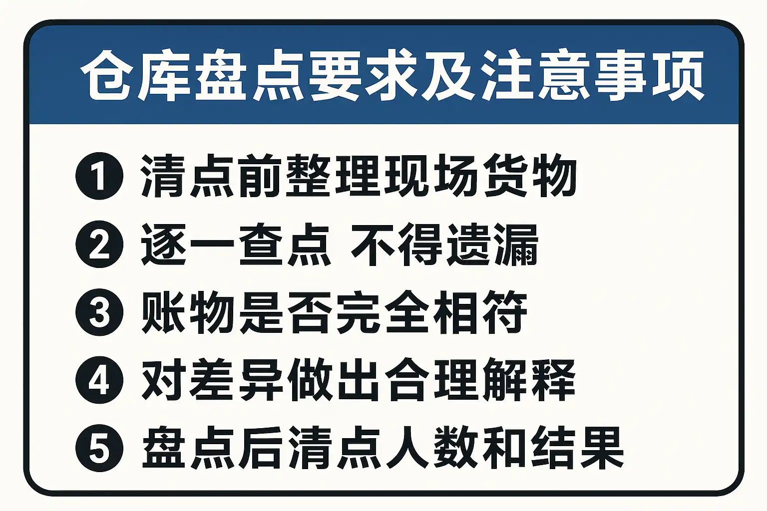 仓库盘点的基本要求包括: