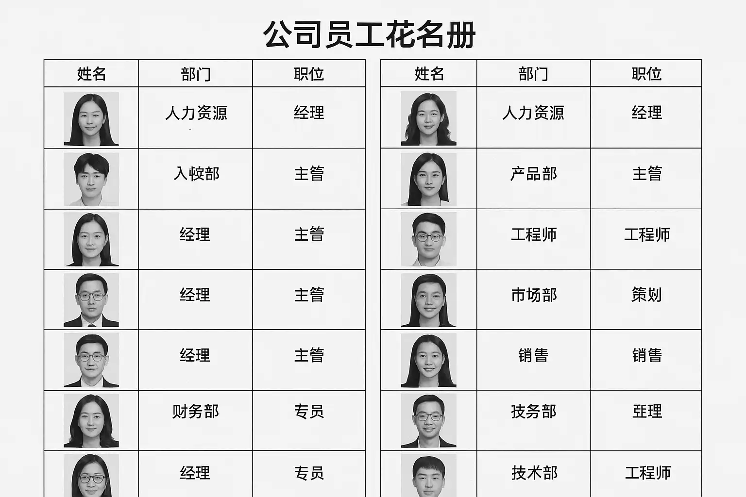 如何通过结构化布局提升公司员工花名册的可读性?