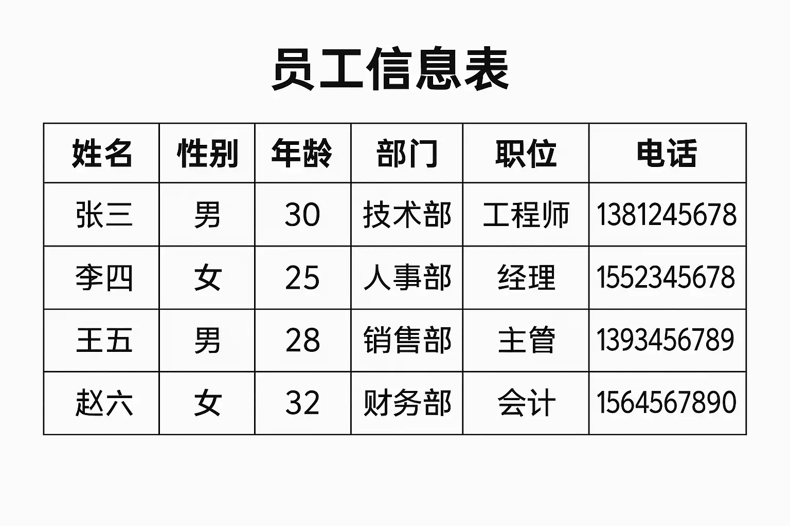 | 工号/ID | 唯一标识符,用于快速检索 |