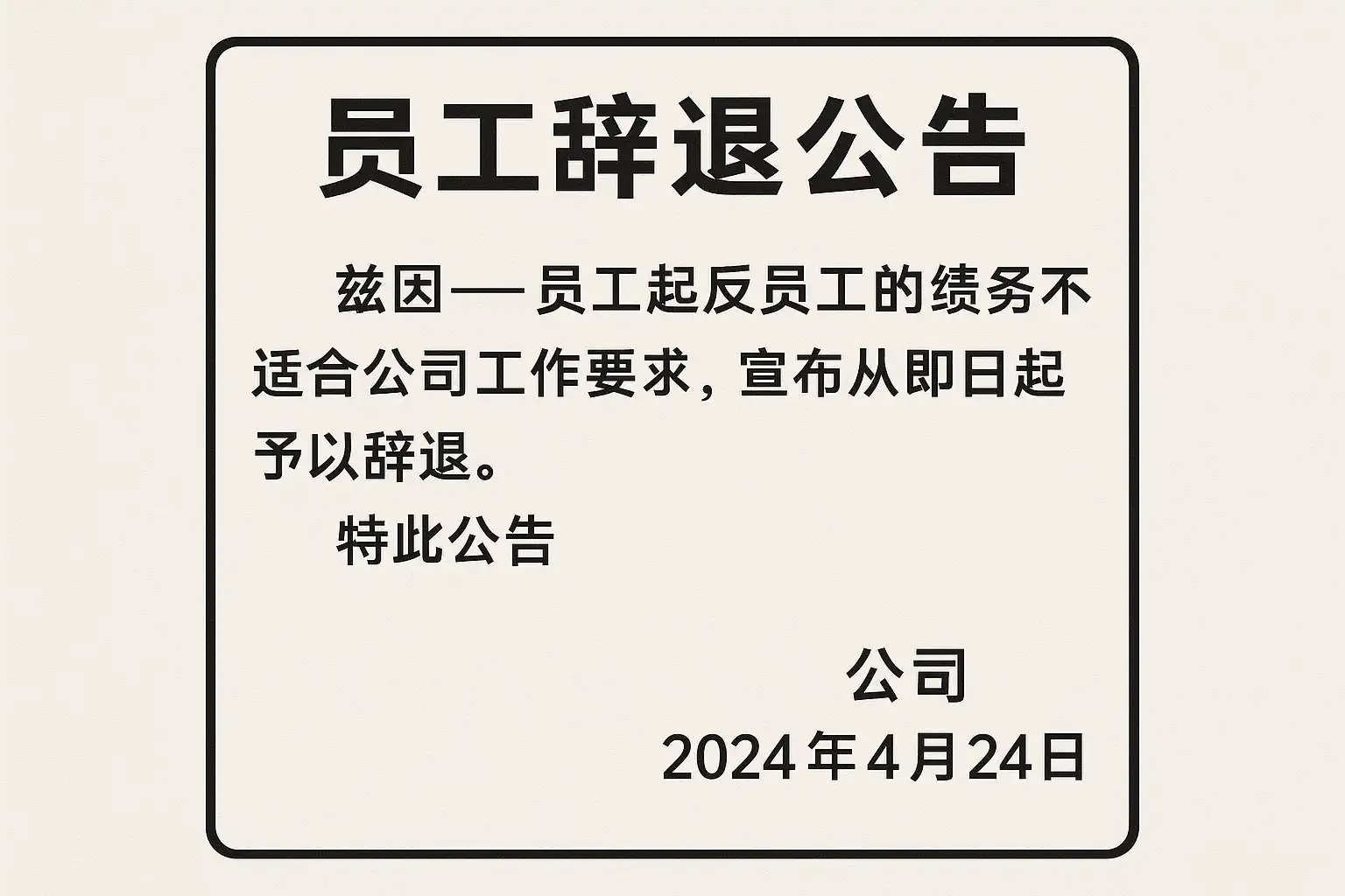 《员工辞退公告通知,如何合法合规处理辞退?》