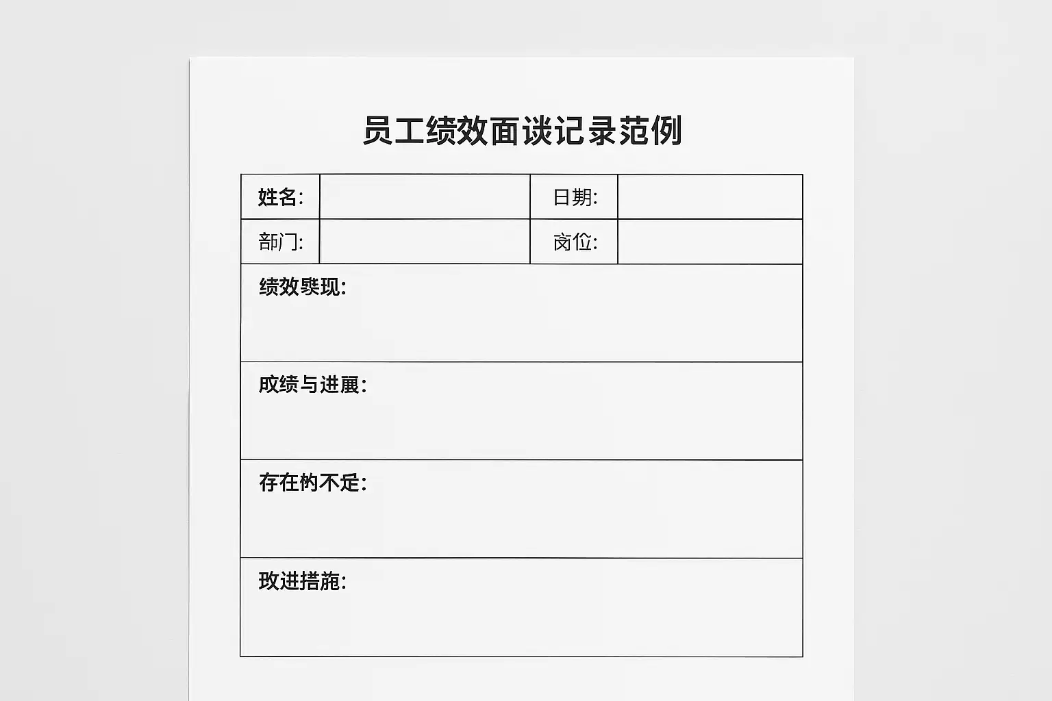 优秀的员工绩效面谈记录范例模板应具备以下特点: