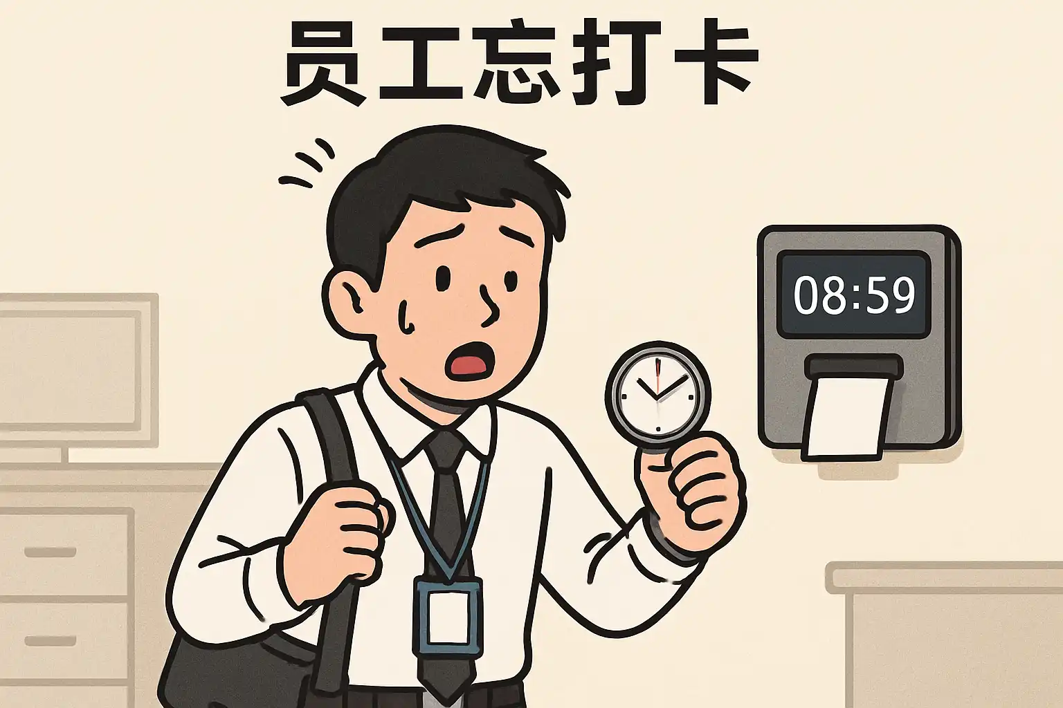 - 忘记携带打卡设备(如工牌、手机等)