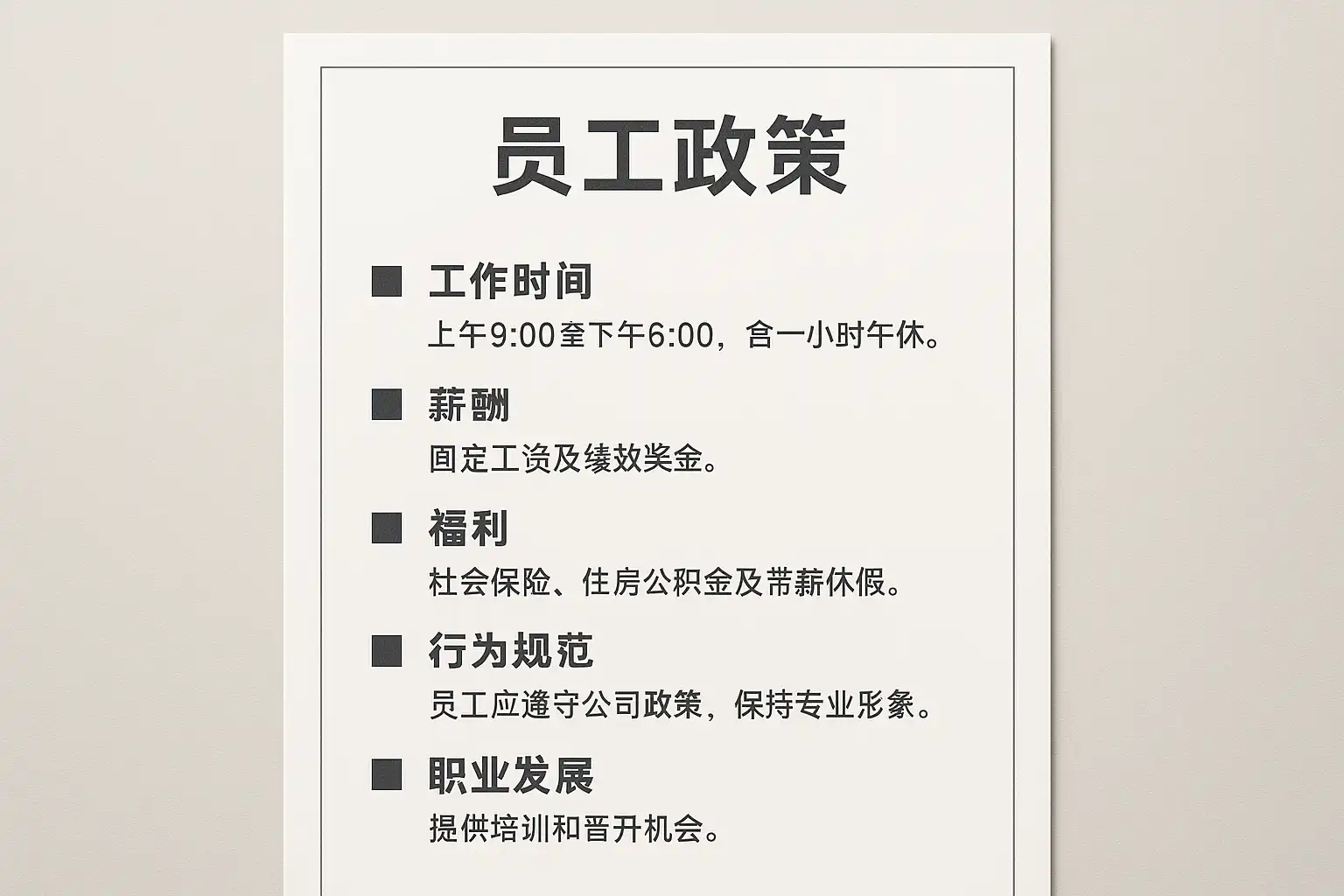 综上所述,有效的员工政策必须紧扣“合法合规、公平合理、高效易行”三大原则。要做到这一点,需要:
