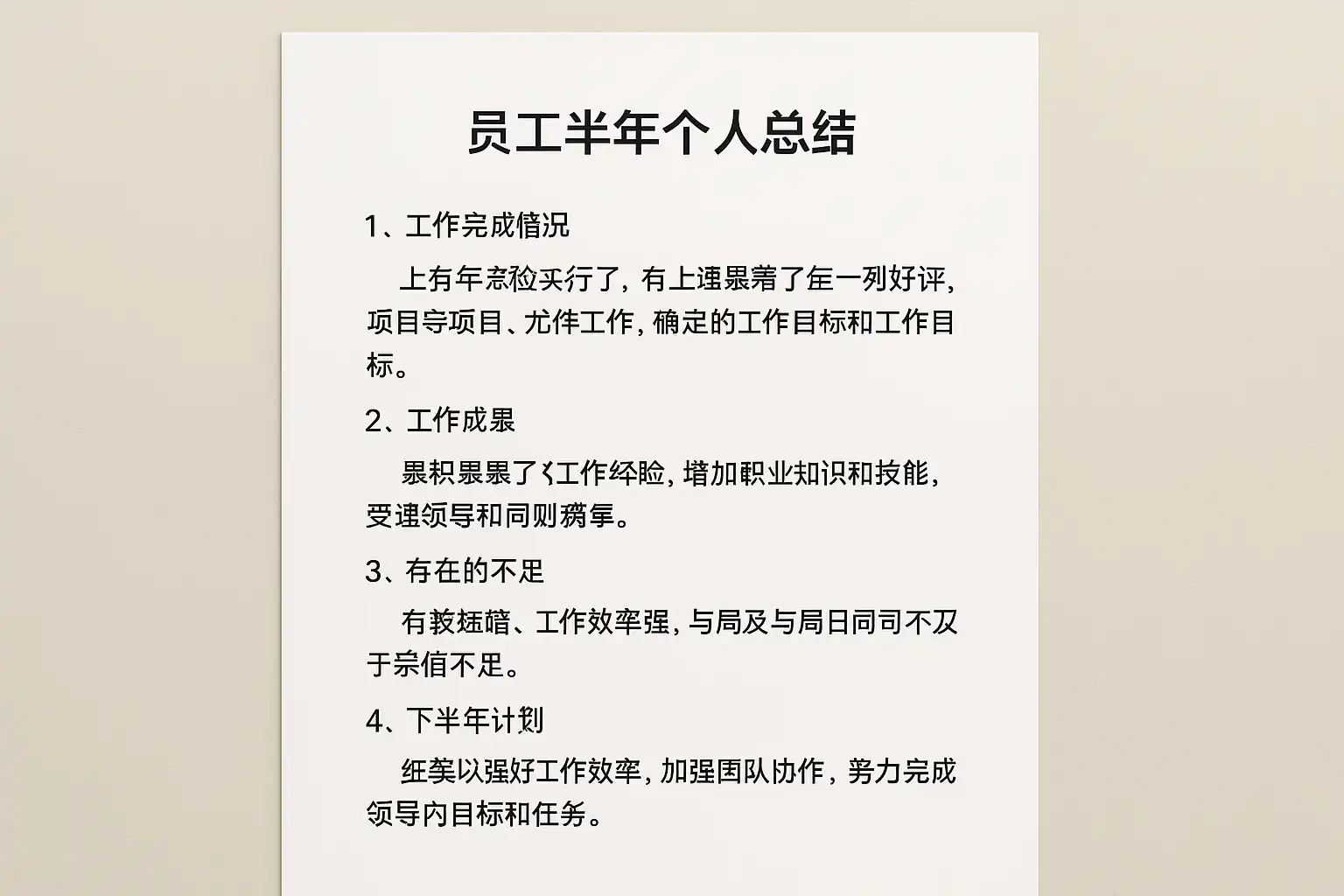 要在员工半年个人总结中自然融入关键词,首先需明确核心关键词,如“员工半年个人总结技巧”和“高效总结”。其次,通过分级标题(H1、H2、H3)合理布局关键词。例如: