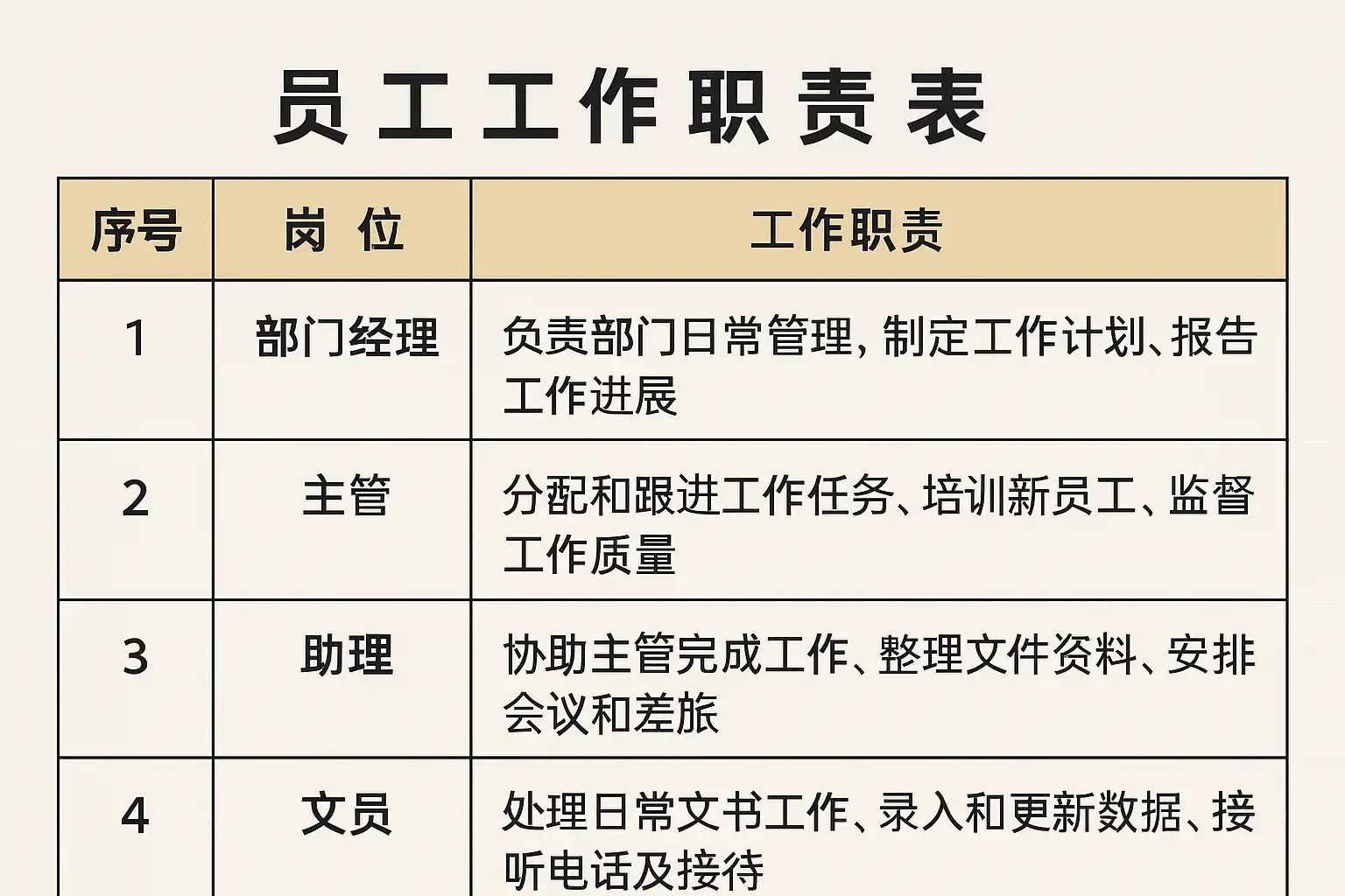 《员工工作职责表详解,如何制定有效的职责分配?》