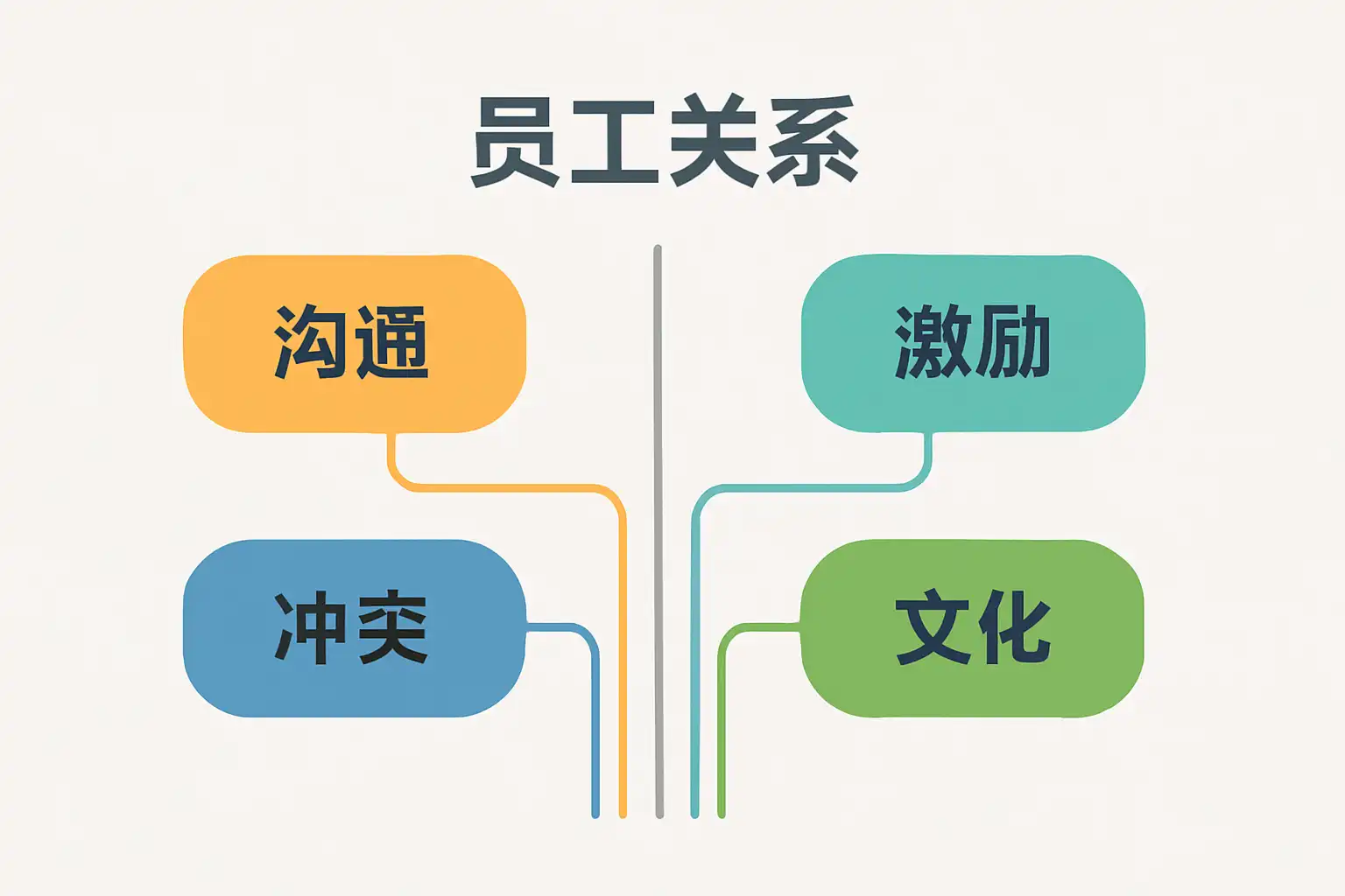 员工关系定义 员工关系(Employee Relations)指的是企业与其雇员之间,通过各种正式或非正式方式建立起来的互动和联系,包括日常沟通、利益协商、冲突解决等内容。
