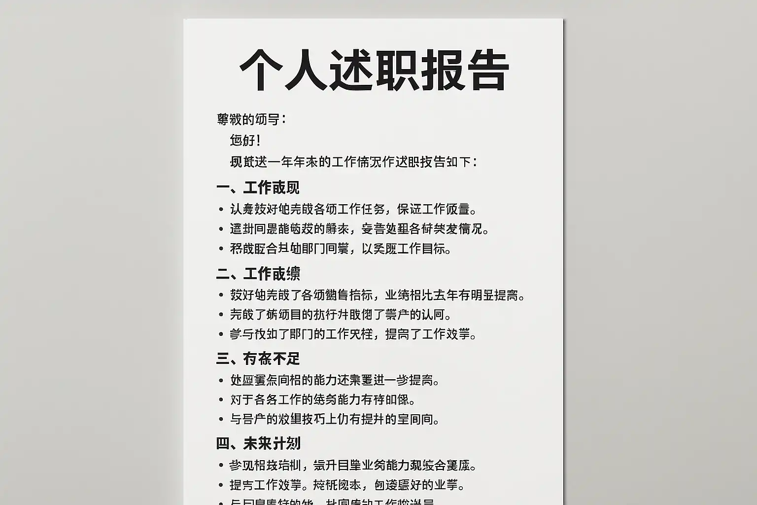 对于普通员工而言,述职报告通常包含以下几个核心板块: