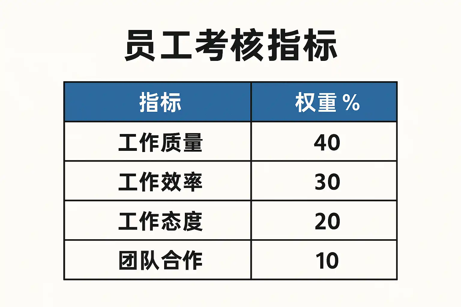 在设计和实施员工考核体系时,需将各类指标科学分类,并结合实际业务需求进行权重分配。以下为常见核心要素及其具体内容: