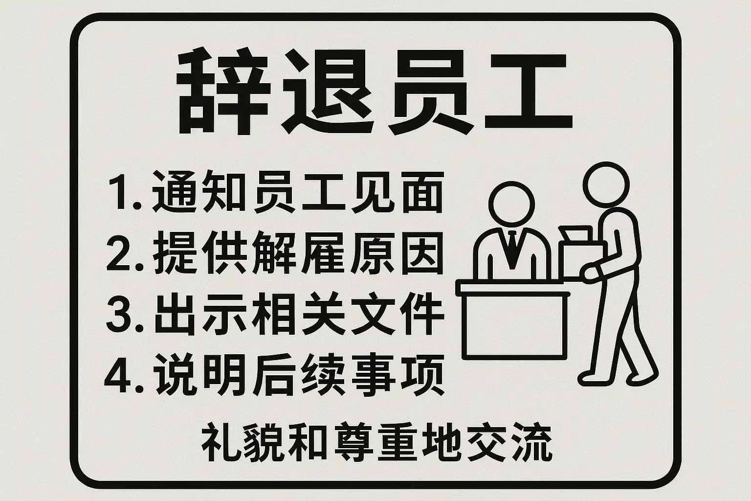 完成解聘决定后,还需妥善安排离职交接和善后工作,以降低运营风险: