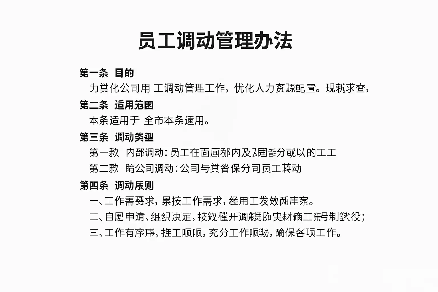 作为HR,我经常遇到员工调动流程不清晰的问题,导致执行效率低下。请问员工调动管理办法具体包含哪些关键内容,才能确保流程规范且高效?
