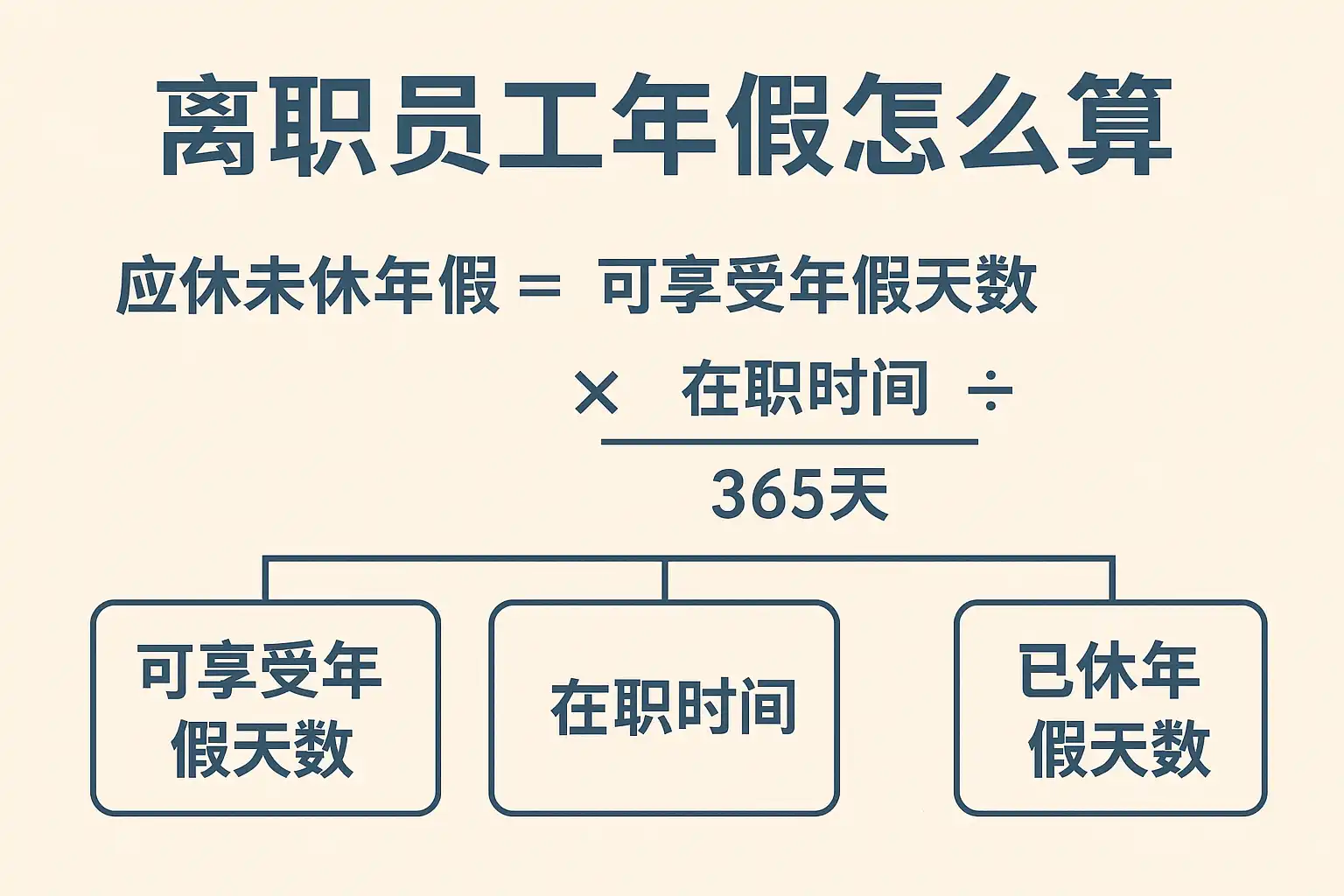 - 全年应享有年假天数 × (实际工作月份 ÷ 12) = 离职可享受的年假天数