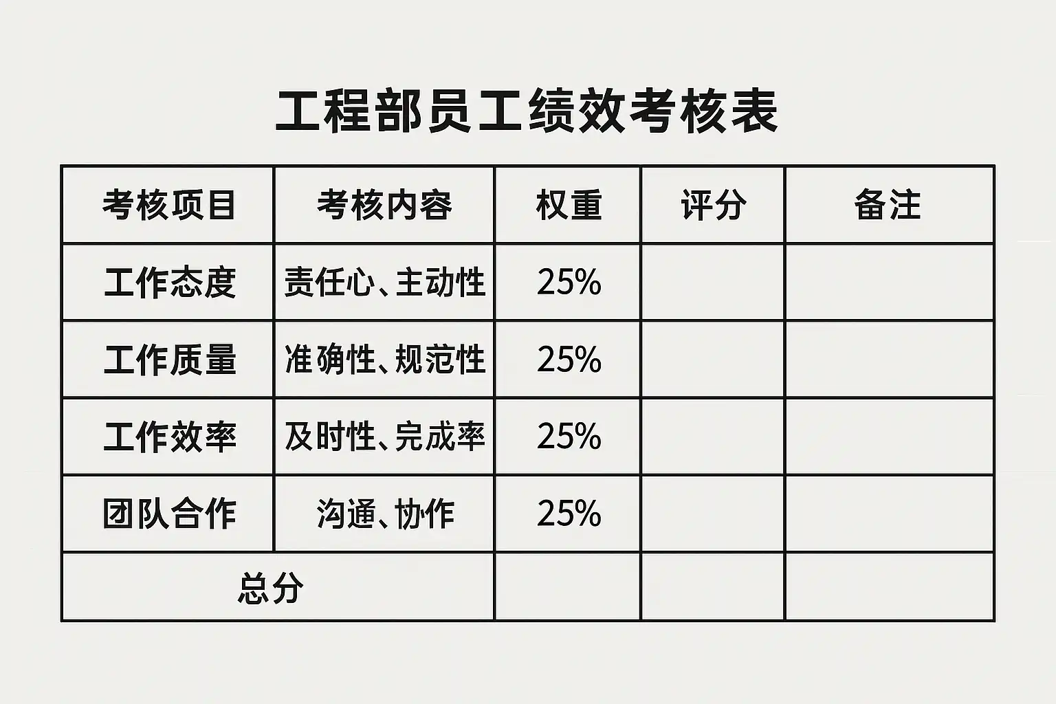 工程部员工绩效考核表详解,如何科学制定考核标准?