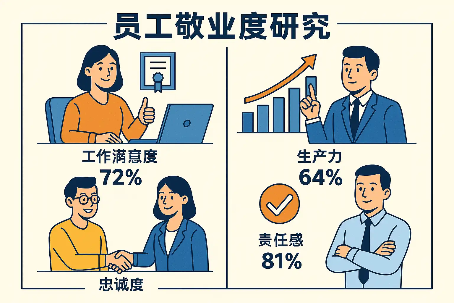 研究背景与意义 随着全球经济环境变化与人才竞争加剧,企业越来越重视如何通过提升员工敬业度来增强组织竞争力。据盖洛普2023年全球职场报告显示,高敬业团队比低敬业团队生产效率高出21%,流失率低18%。因此,加强对员工敬业度的研究,是实现组织持续成长和高效协作的重要基础。