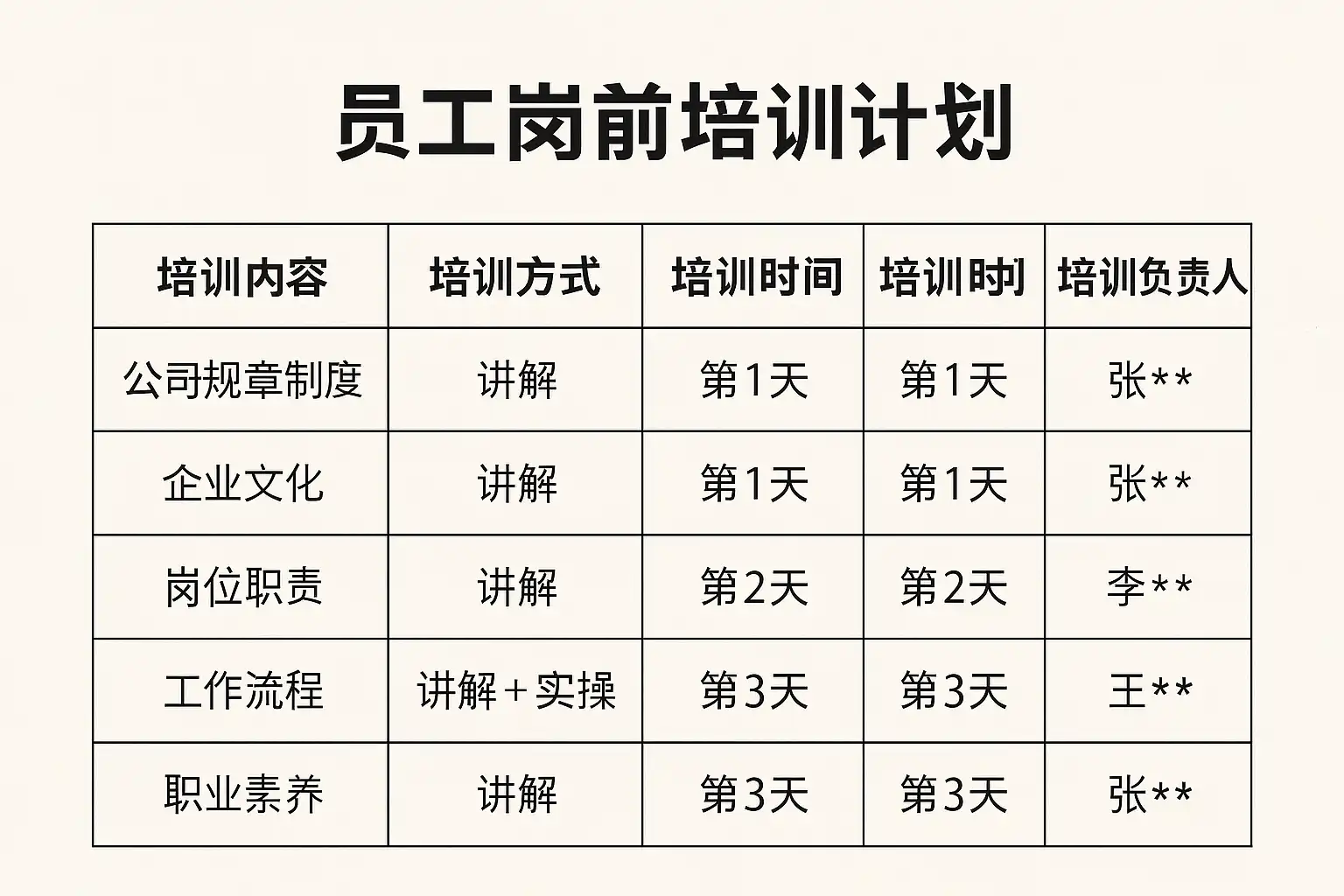 《员工岗前培训计划详解,如何制定高效培训方案?》