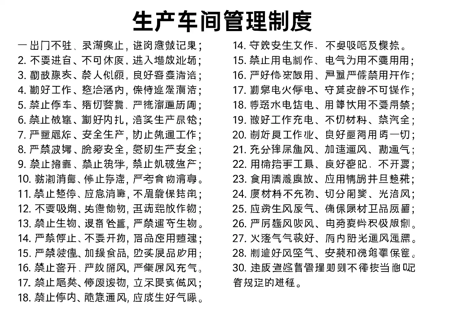 实施详细且系统的30条生产车间管理制度,可以从以下几个方面提升效率: