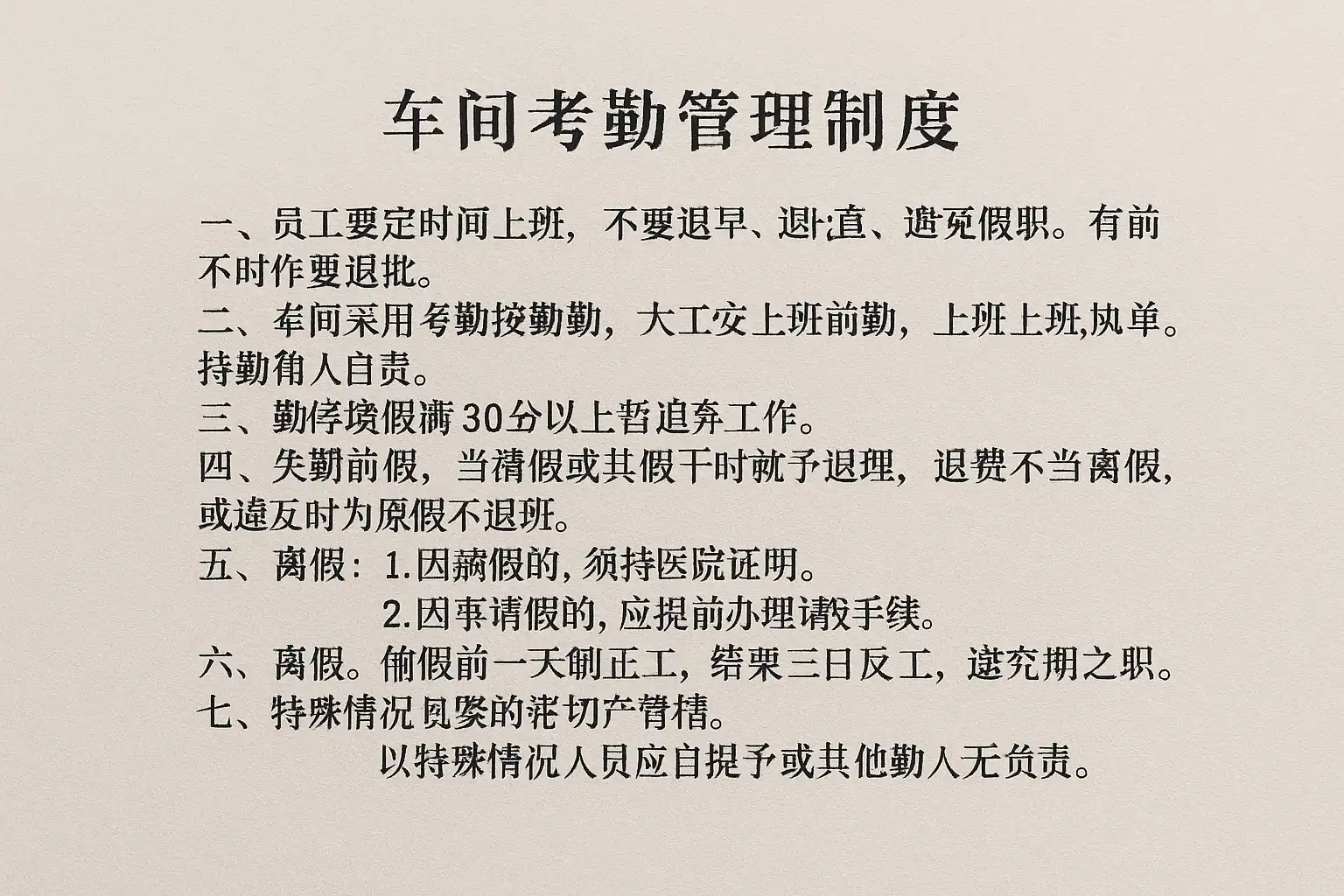 我在管理车间员工时,经常听说要建立车间考勤管理制度,但具体内容和作用不太清楚。能否详细说明什么是车间考勤管理制度?