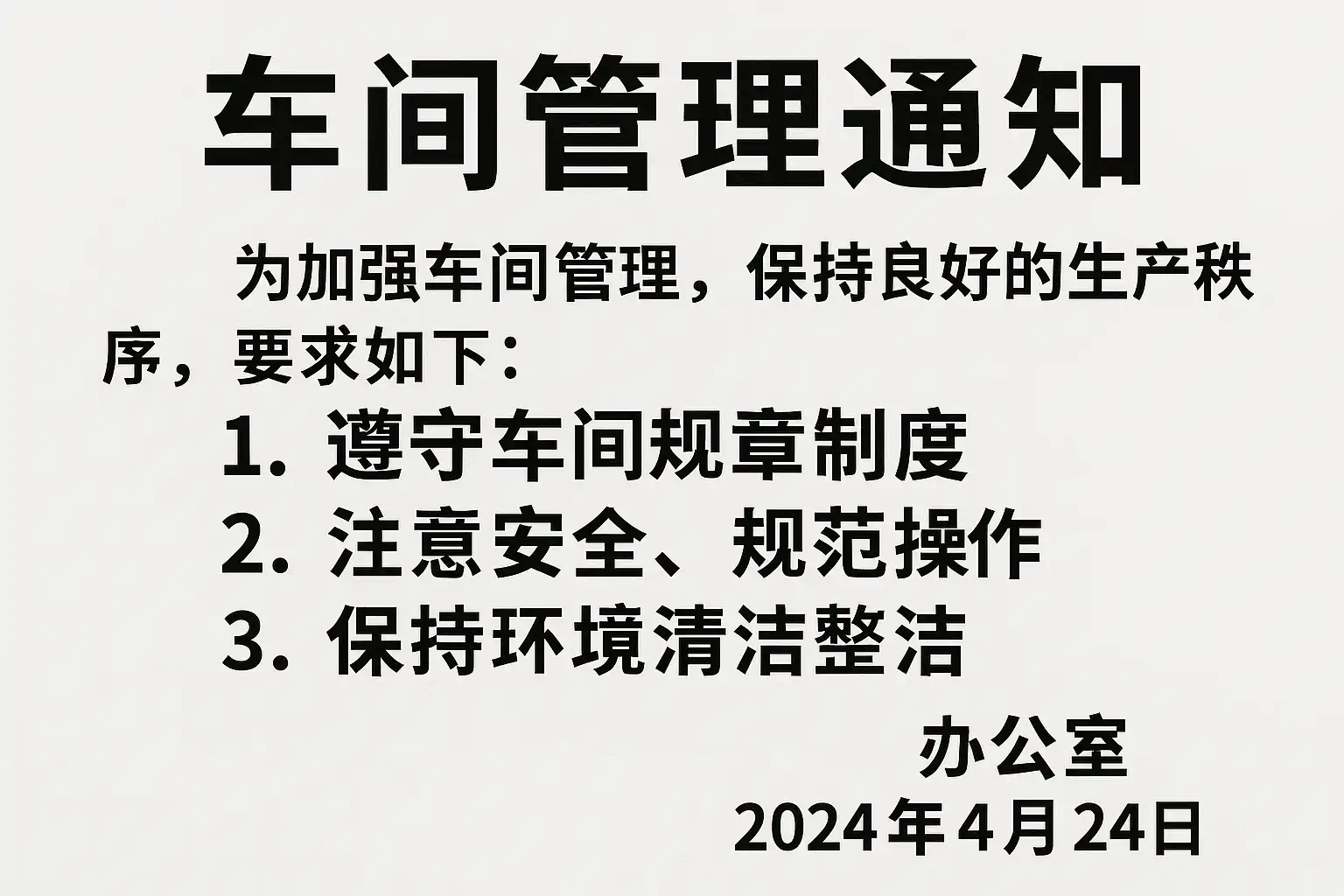 编写针对性强的车间管理通知,可以遵循以下原则: