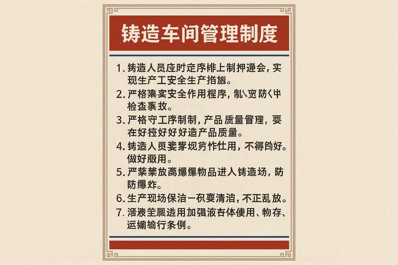 我刚接手铸造车间,想了解制定一套科学的管理制度需要包含哪些核心内容?特别是怎样的制度能有效规范操作流程、保障安全生产?