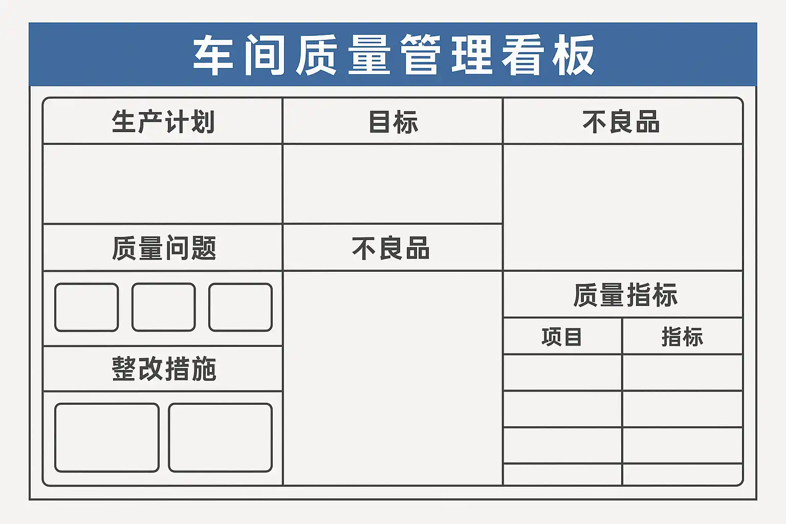 高效的车间质量管理看板模板应包含以下核心要素: