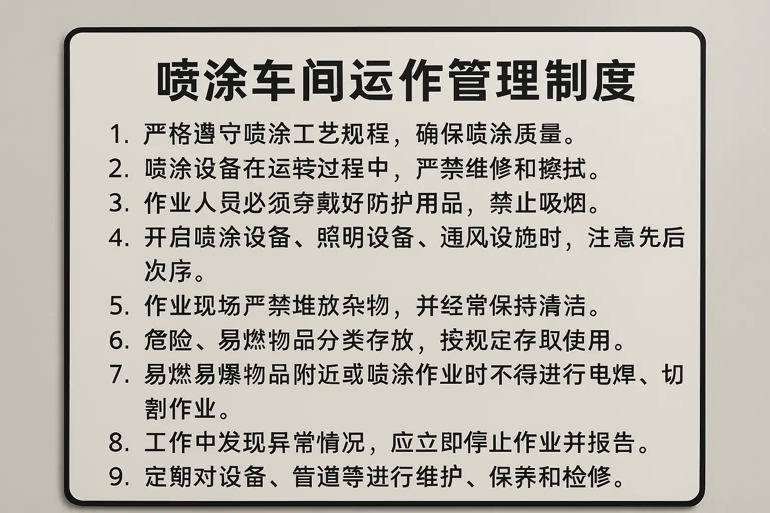 流程标准化是喷涂车间高效、有序运行的基础。通过对作业内容、岗位职责和操作步骤进行统一规范,可以减少人为差错,提高产品一致性。