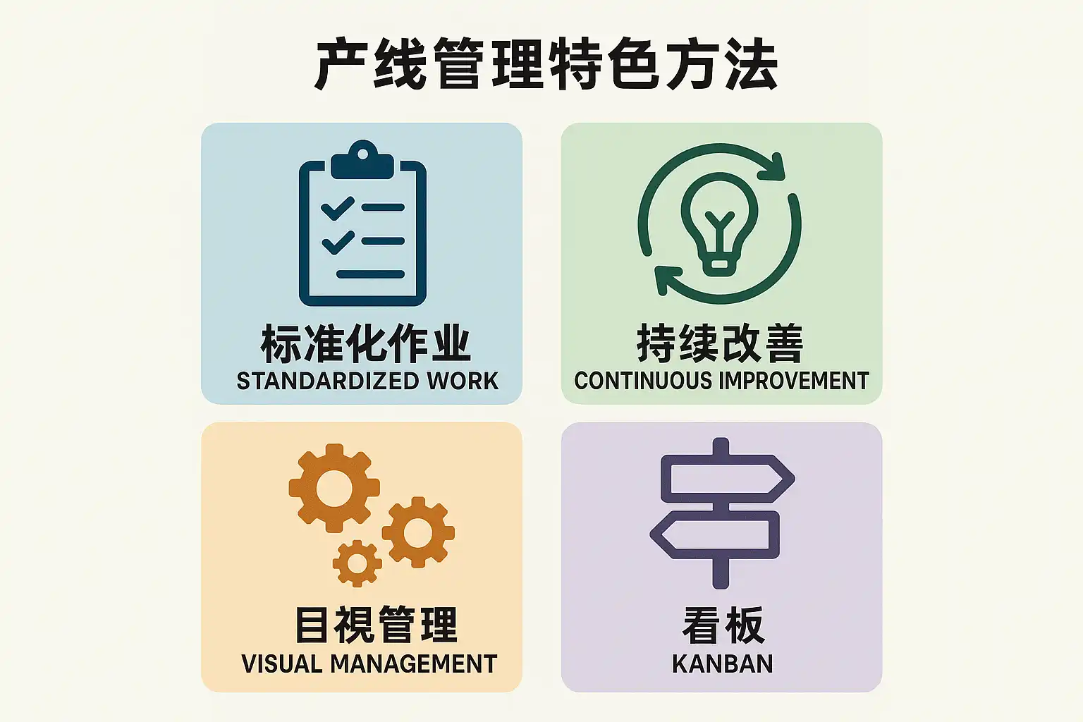 | 流程标准化 | 明确每一道工序步骤,实现作业指导书落地 | 大规模/重复性生产 |