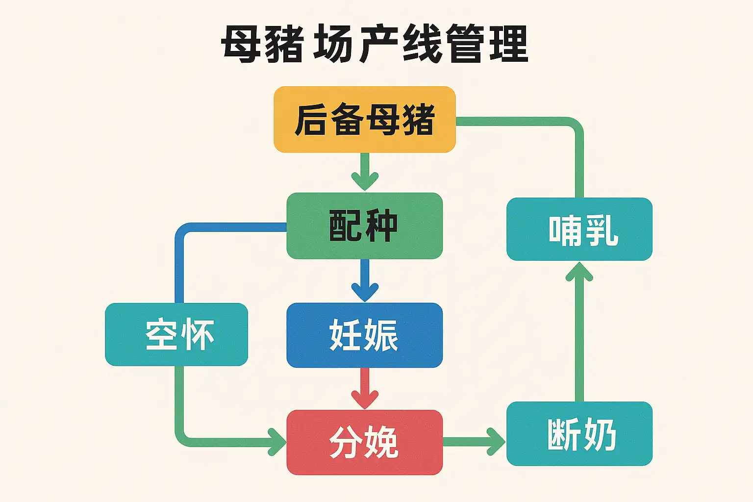 | 流程梳理 | 明确配种、分娩、哺乳、保育等关键节点 | 梳理出最优工艺路径 |