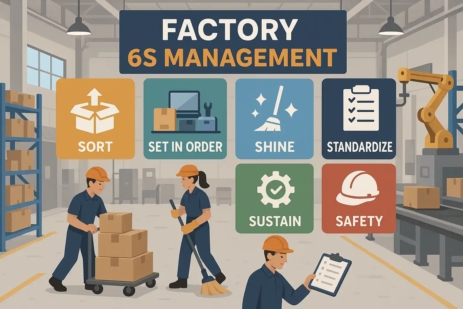 6S管理是指通过整理(Seiri)、整顿(Seiton)、清扫(Seiso)、清洁(Seiketsu)、素养(Shitsuke)和安全(Safety)六个方面,对企业生产现场进行持续优化和规范。6S起源于日本,被全球制造业广泛采纳,是精益生产的重要基础。其核心目标在于消除浪费、防止事故、提高产品质量与员工积极性,从而实现企业综合竞争力的全面提升。