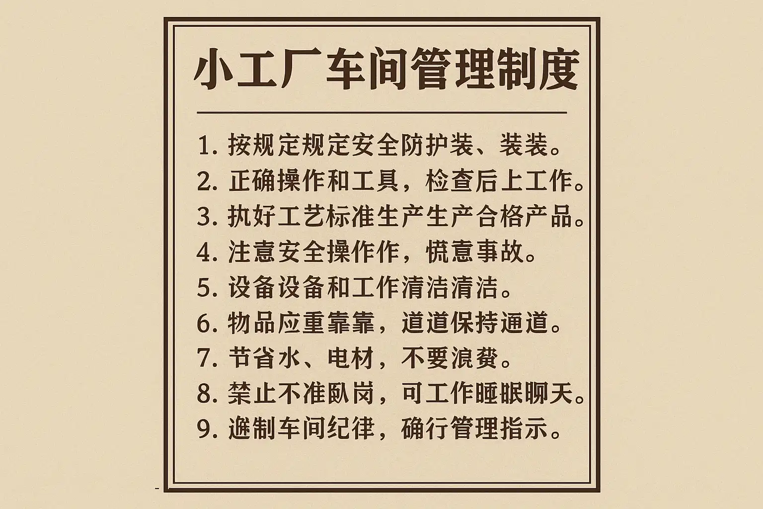 背景说明: 明确的岗位分工和流程标准,是小工厂防止混乱、防呆防错的基础。例如许多因岗位混淆导致原材料错领或批次追溯困难的问题,都可通过细致的制度设计彻底杜绝。