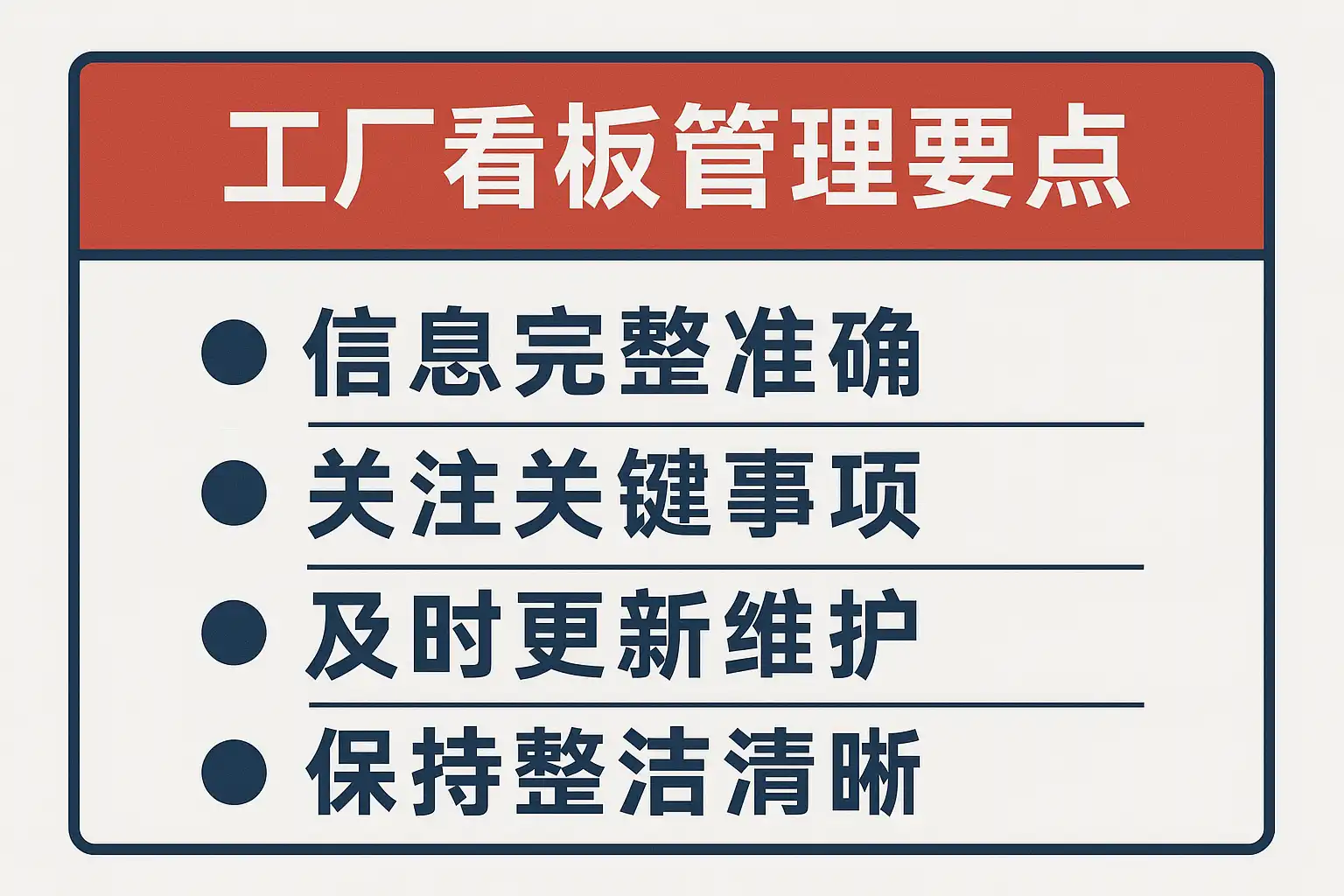 作为生产管理人员,我经常听说工厂看板管理有助于提升生产效率,但具体的核心要点到底是什么?我希望了解哪些方面是实施看板管理时必须重点关注的。