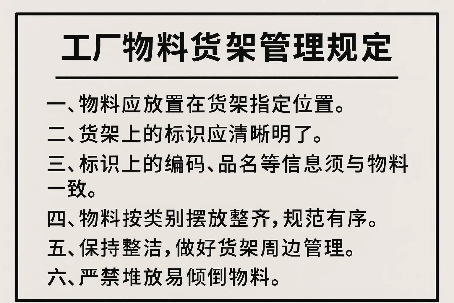 工厂物料货架管理规定核心内容主要包括: