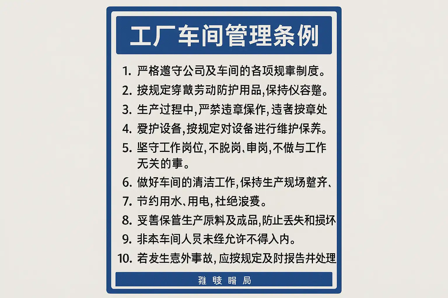 完善且具体的车间管理条例,是规范操作、防范安全事故与保障高效运行的基础。主要包含以下方面: