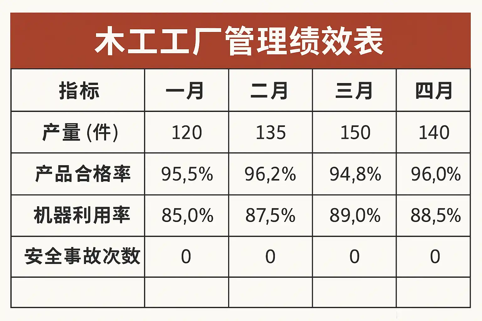 绩效表在木工工厂管理中主要发挥以下几个关键作用: