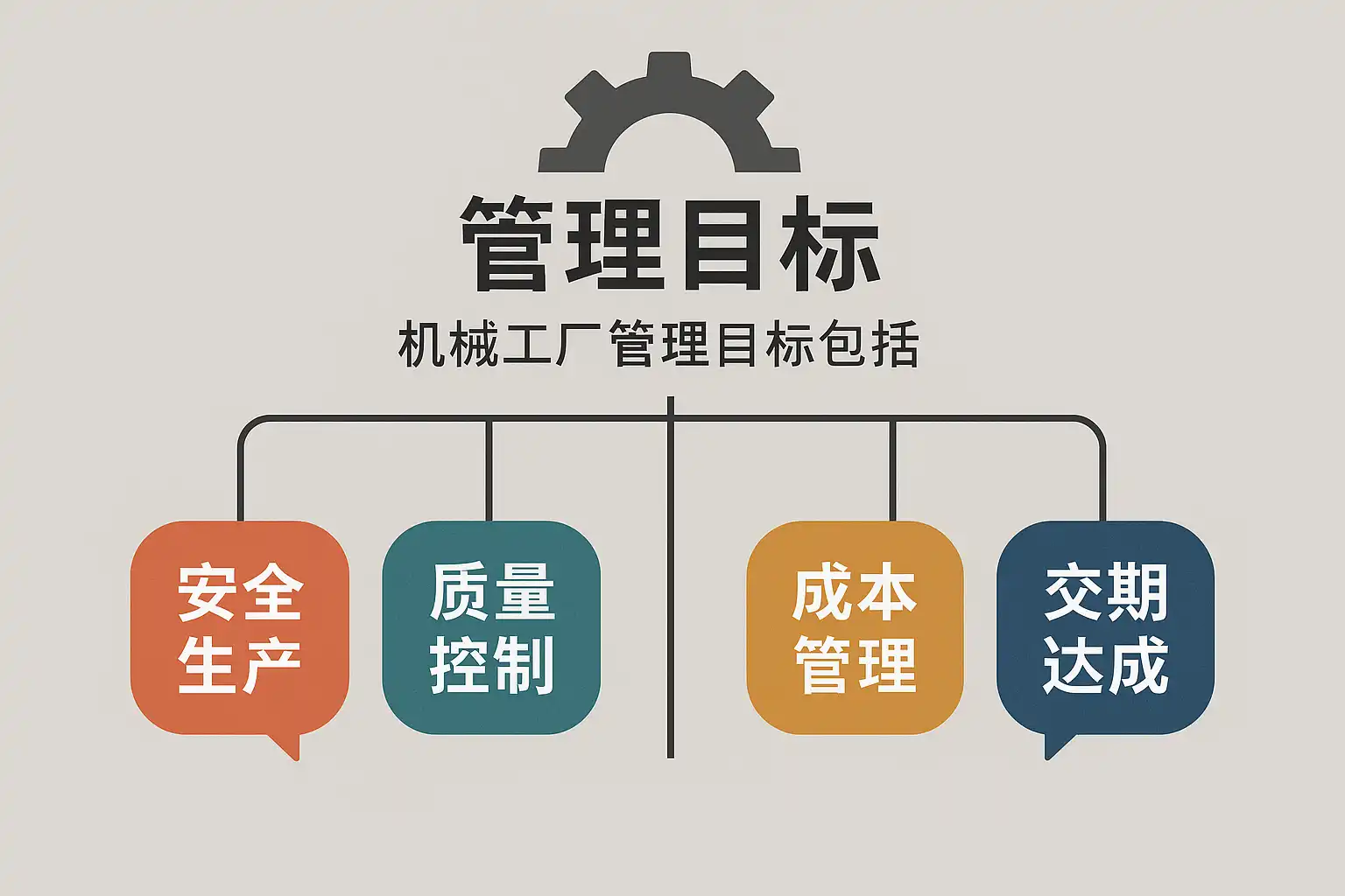 我在了解机械工厂管理时,常听说管理目标很重要,但具体包含哪些方面呢?能不能详细说明机械工厂管理的核心目标,帮助我理清思路?