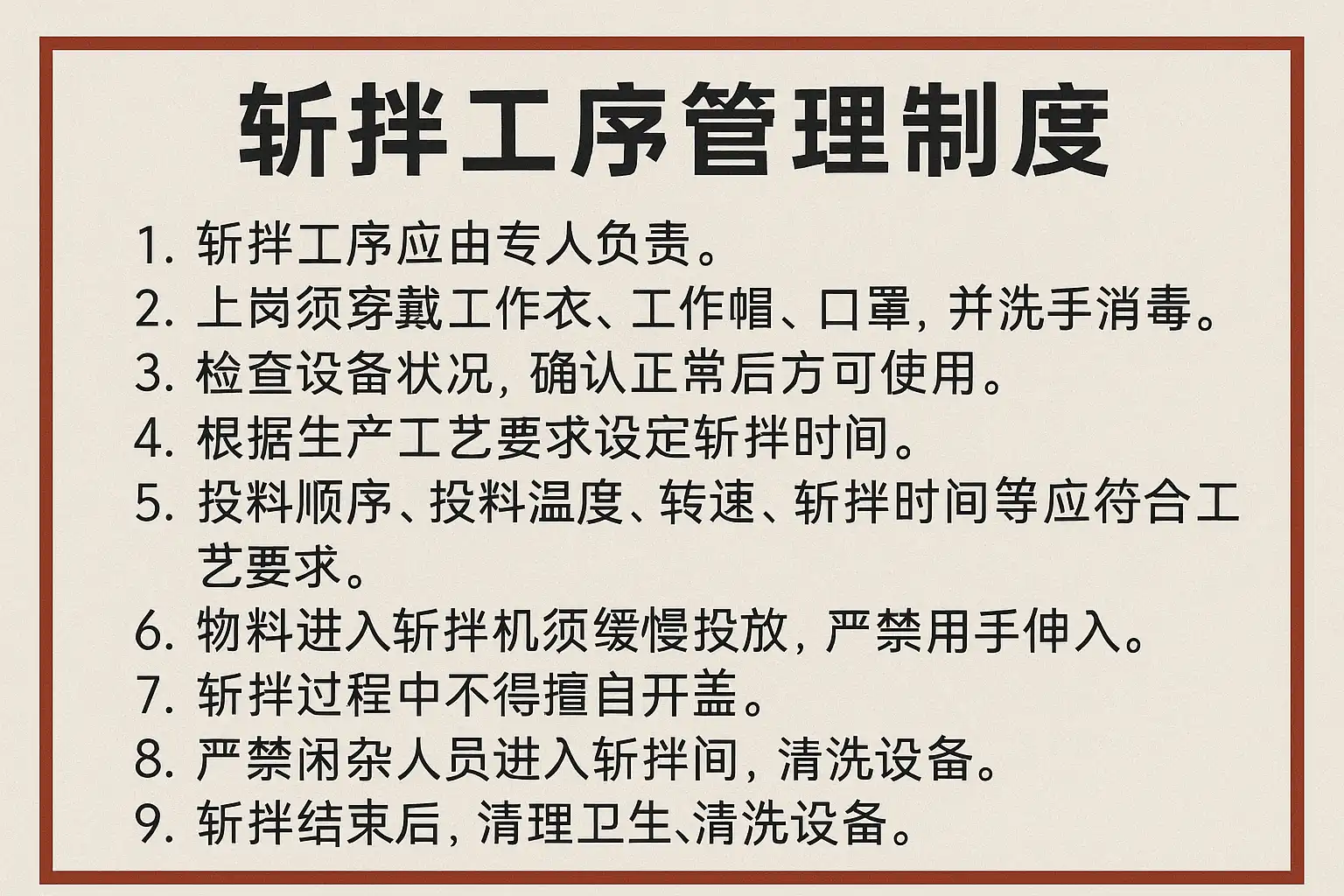 斩拌工序管理制度主要涵盖以下核心内容: