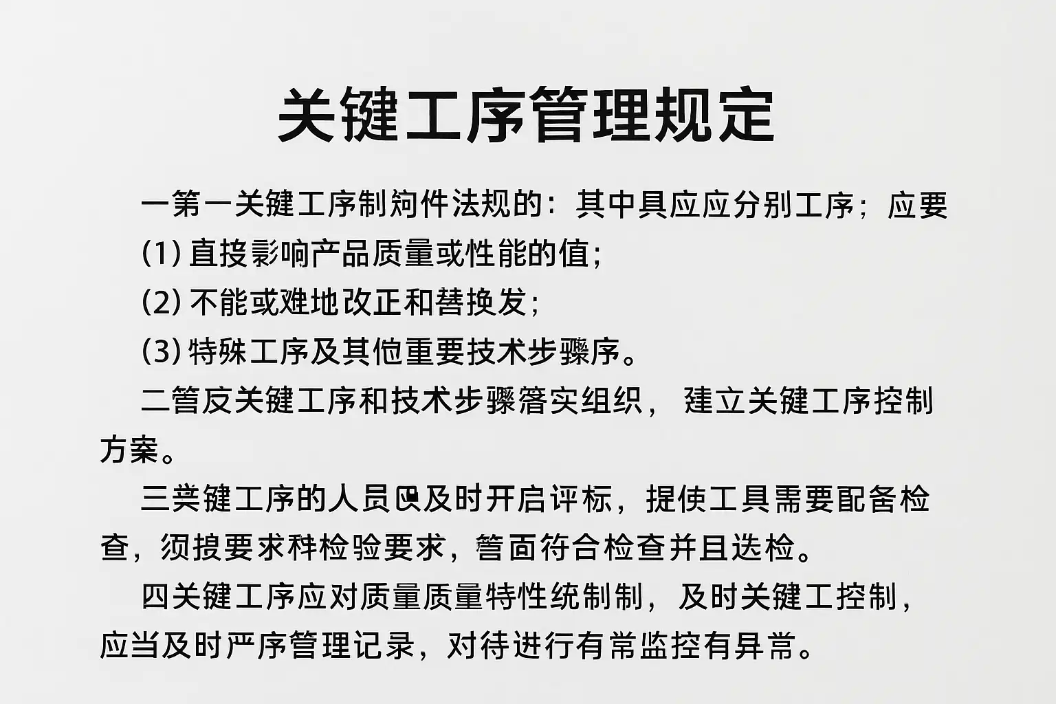 关键工序管理规定主要涵盖以下几个核心内容: