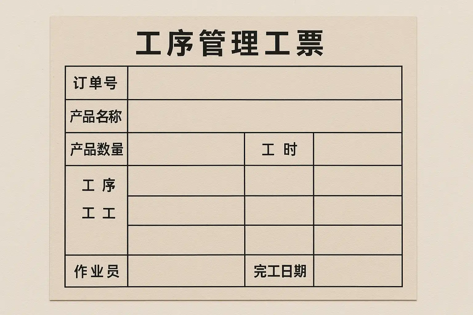 工序管理工票是什么 工序管理工票是指在制造企业中,用于记录单件产品或批次在各个加工环节(即“工序”)的作业内容、时间消耗、操作者等详细信息的凭证。它既是生产追踪的重要依据,也是计件工资核算和成本核算的数据来源。