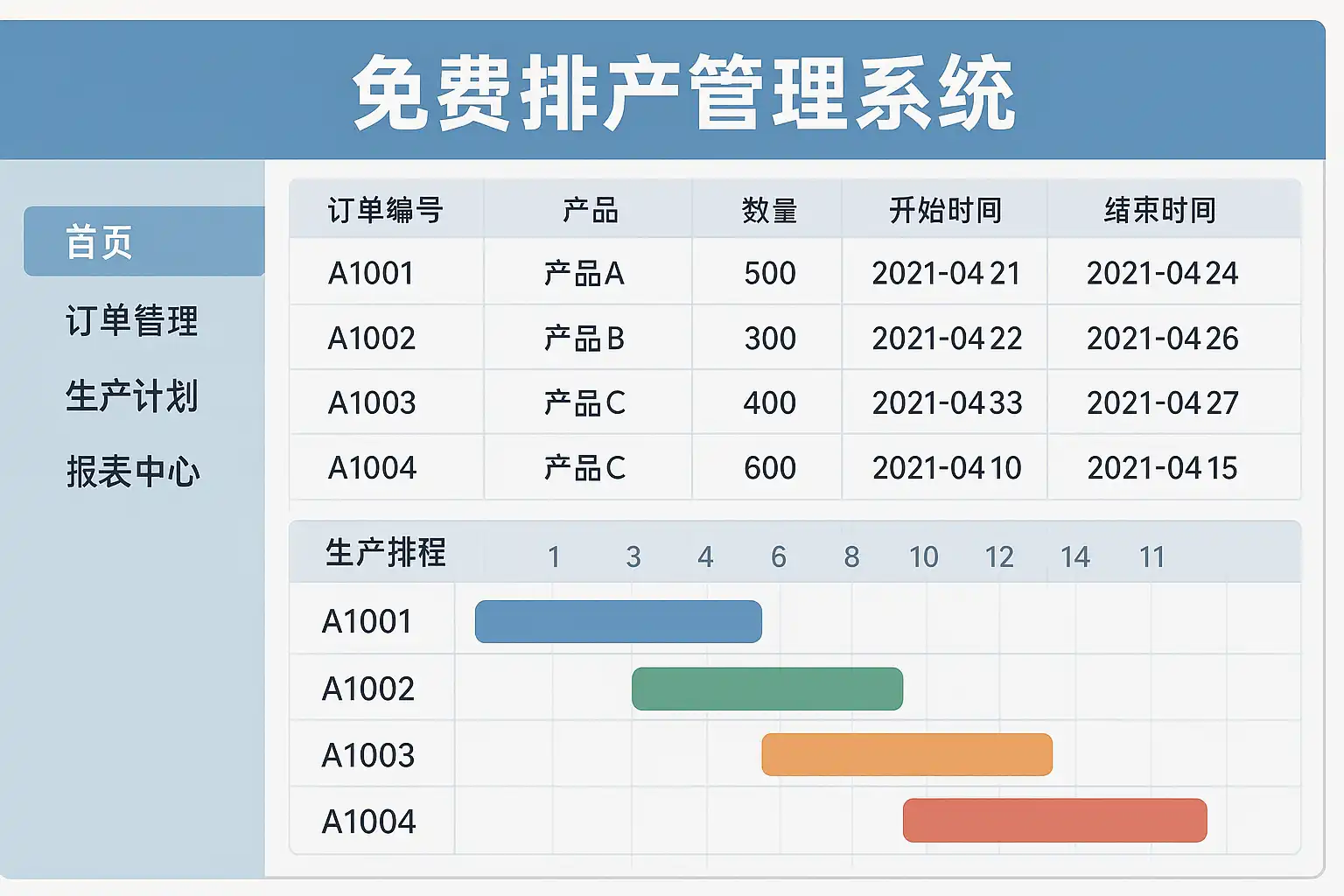 排产管理系统是指专门用于车间生产计划制定和执行跟踪的软件工具。近年来,随着信息化水平提高,市面上出现了多种免费的或部分免费的在线排产工具,这些系统广泛应用于如下典型场景: