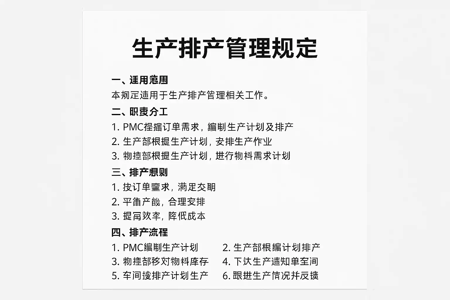 我在工作中经常听到‘生产排产管理规定’,但具体它包含哪些内容?这些规定如何实际影响企业的生产效率,能否详细解释一下?