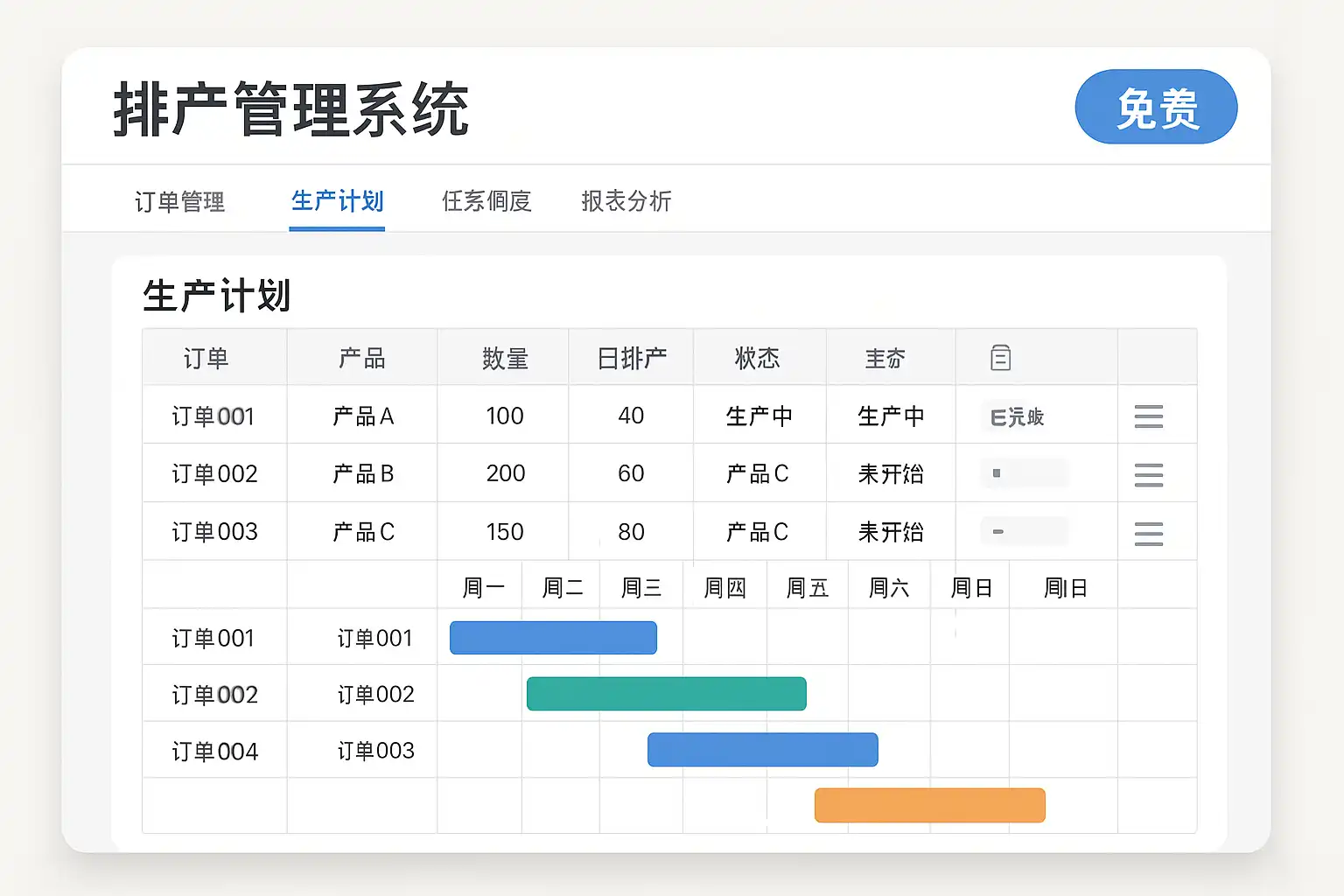 排产管理系统是一种用于优化生产计划和资源分配的软件。免费版本通常包含以下核心功能:
