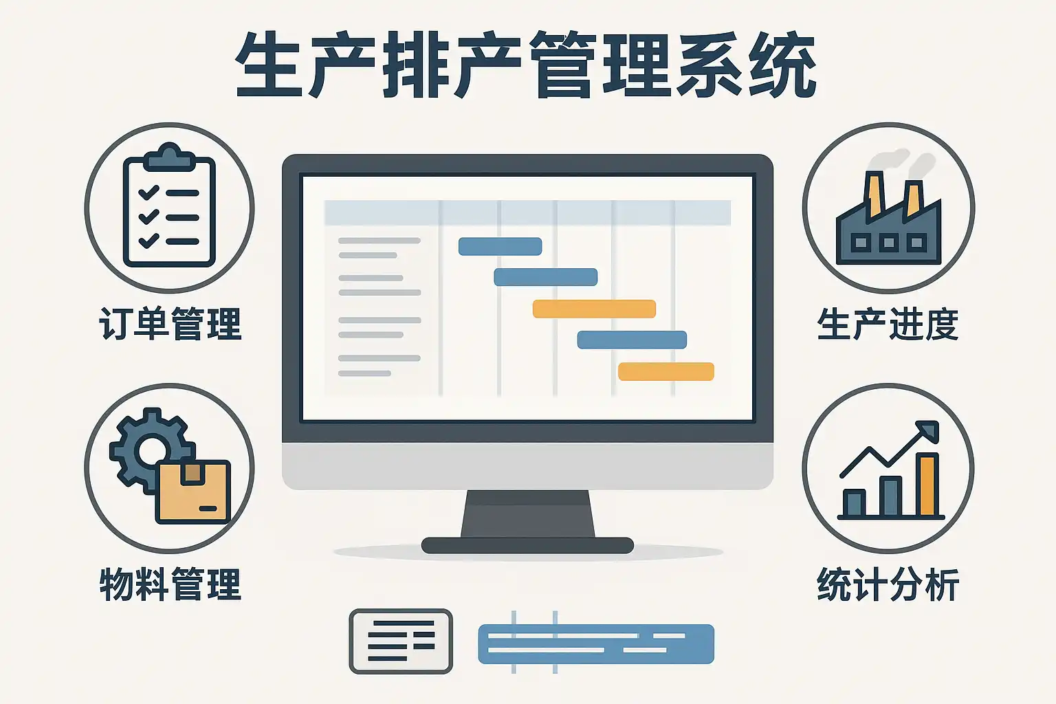 | 1 | 自动化排产 | 基于订单及库存自动生成最优的日/周/月度计划,减少人工干预与错误 |