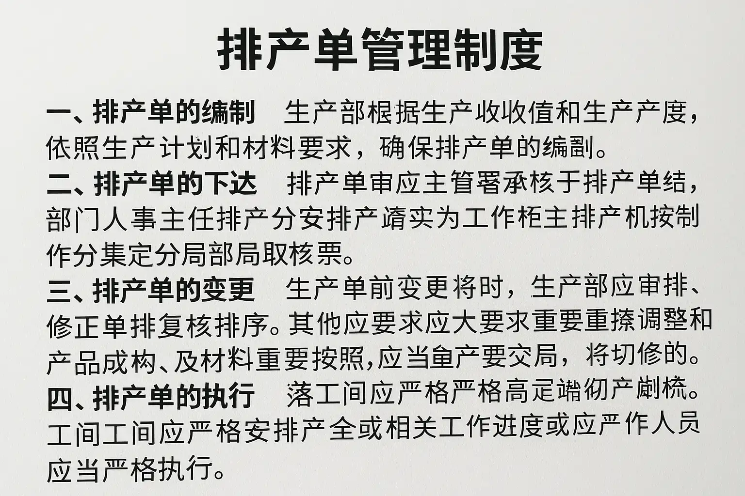 排产单管理制度是指企业围绕生产计划,将订单分解为具体的车间作业安排,并以“排产单”为核心载体,对各环节进行全流程管控的一套规范体系。它不仅是连接市场需求与制造执行之间的重要桥梁,也是推动敏捷制造和精益生产落地的重要工具。
