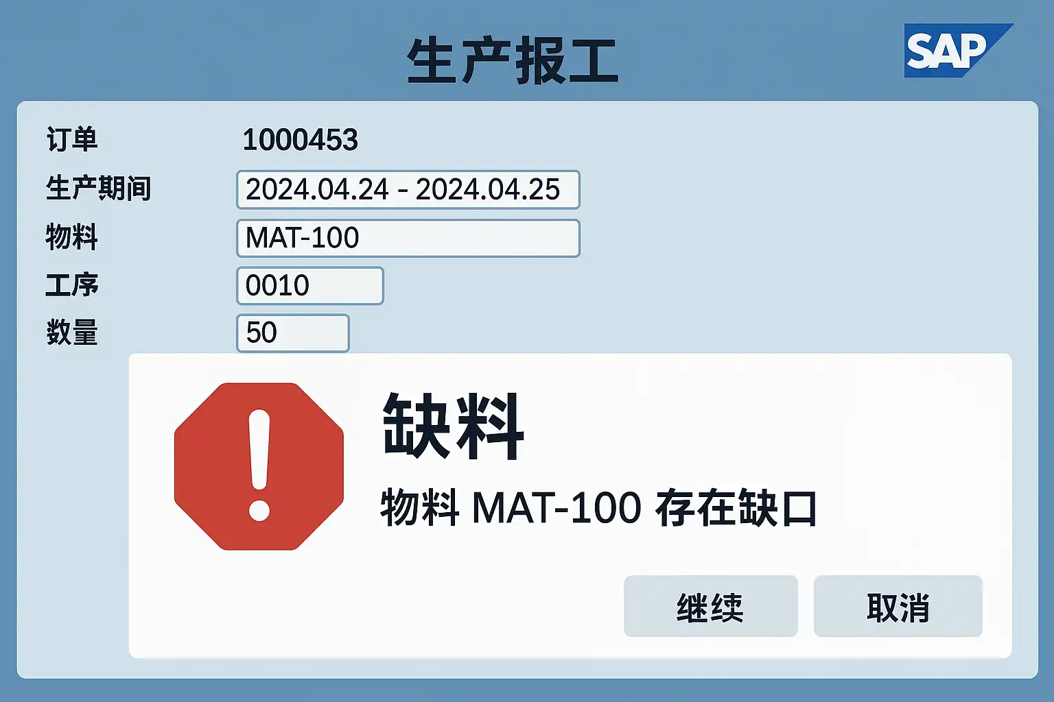 在SAP中如何利用技术工具预防生产报工中的缺料问题?