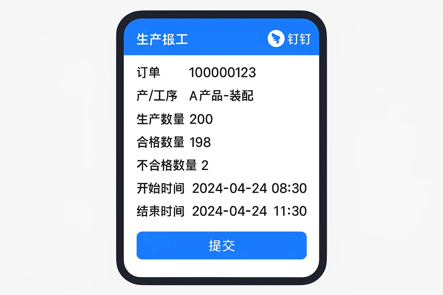 - 根据不同岗位/产品线定制表单字段(如产量、不良品数、用工时长等)。