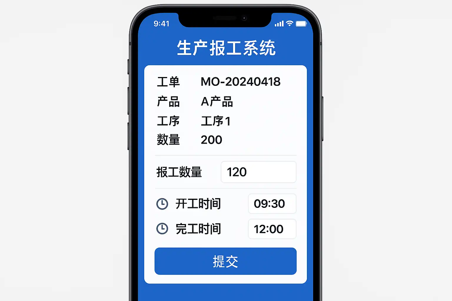 - 扫描工单条码自动带出产品信息,实现快捷登记。