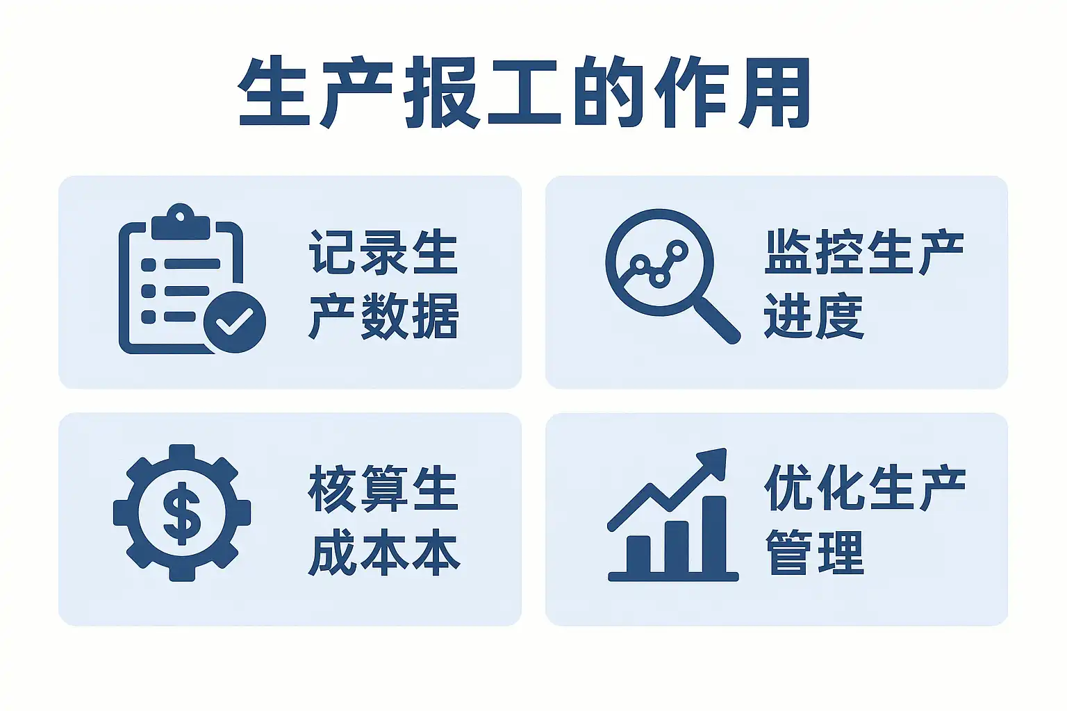 生产报工是指在制造过程中,员工或系统对完成的生产任务进行登记和反馈的过程。其主要作用包括: